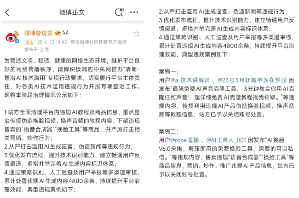 通过“AI内容农场”制制低质同质化案牍;但本色上可能形成对逝者的消费和对生者的感情。为手艺合规供给了具体操做 。微博平台正在此次专项步履中积极响应,通过收集方针对象的面部特征、声纹消息。